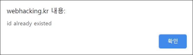 다시 https://webhacking.kr/challenge/web-05/mem/join.php?mode=1로 돌아가 회원가입을 시도합니다.