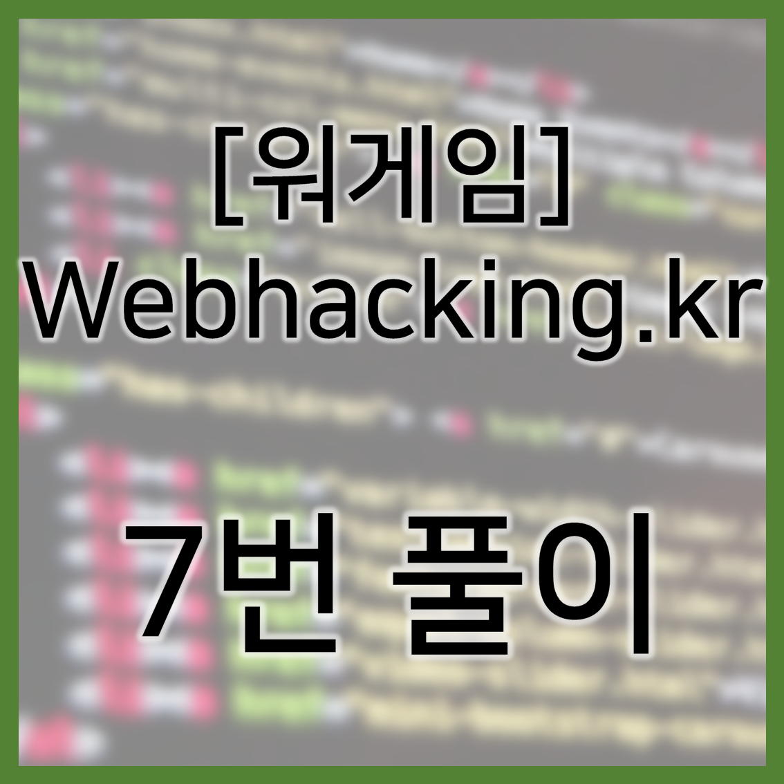 이상으로 Webhacking.kr 7번 문제 풀이를 마치겠습니다.